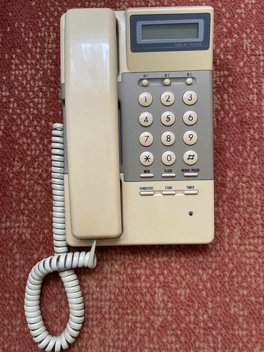 Retro vezetékes telefon, teszteletlen állapotban.