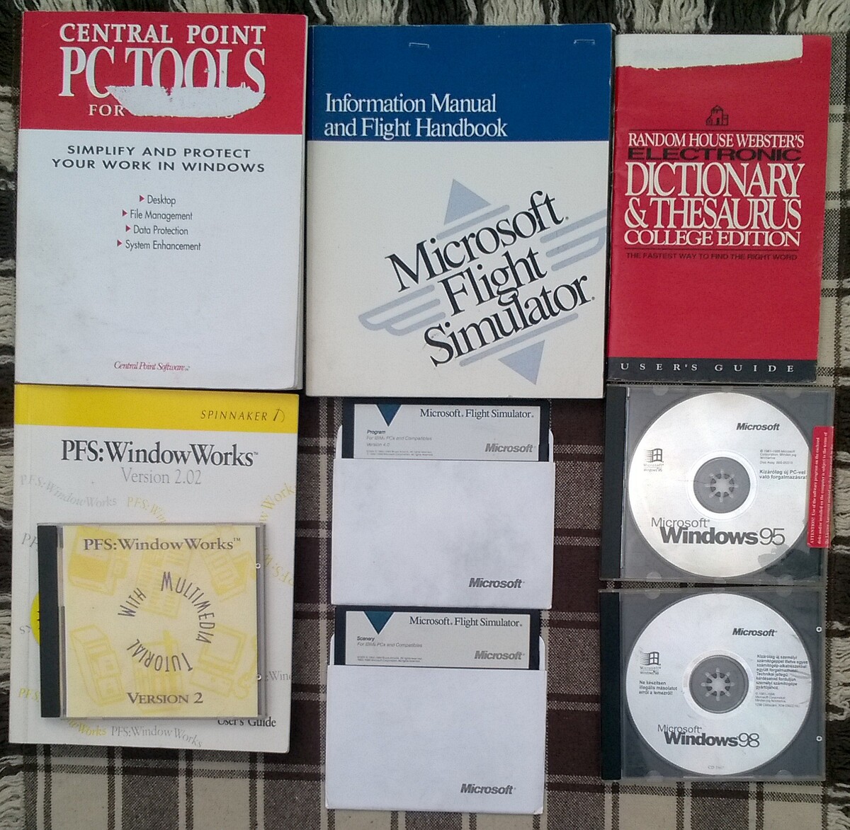 Windows 95, Windows 3.1 kézikönyv, DOS-os könyvek, programozással kapcsolatos könyvek stb.