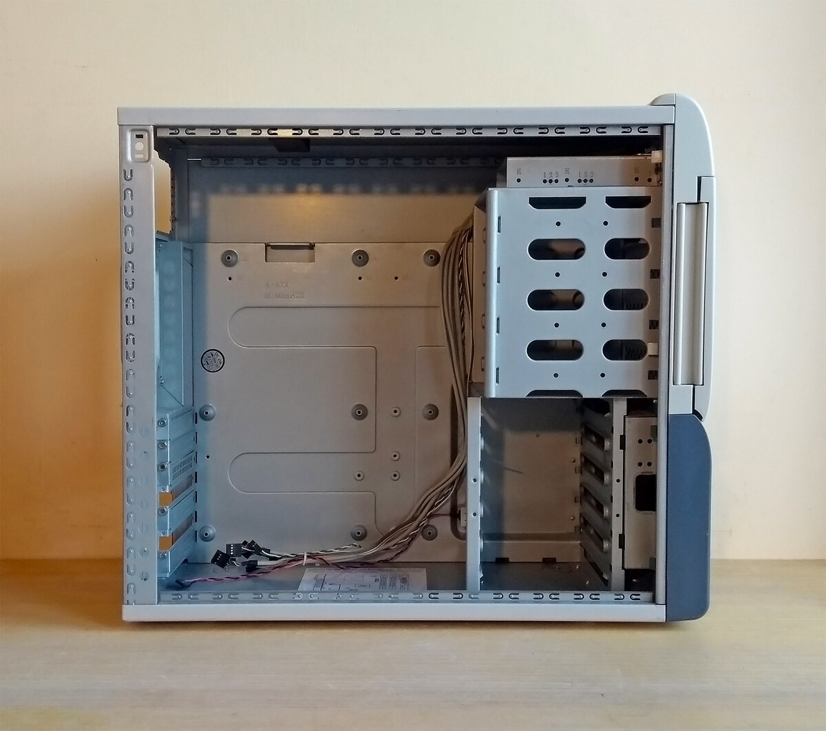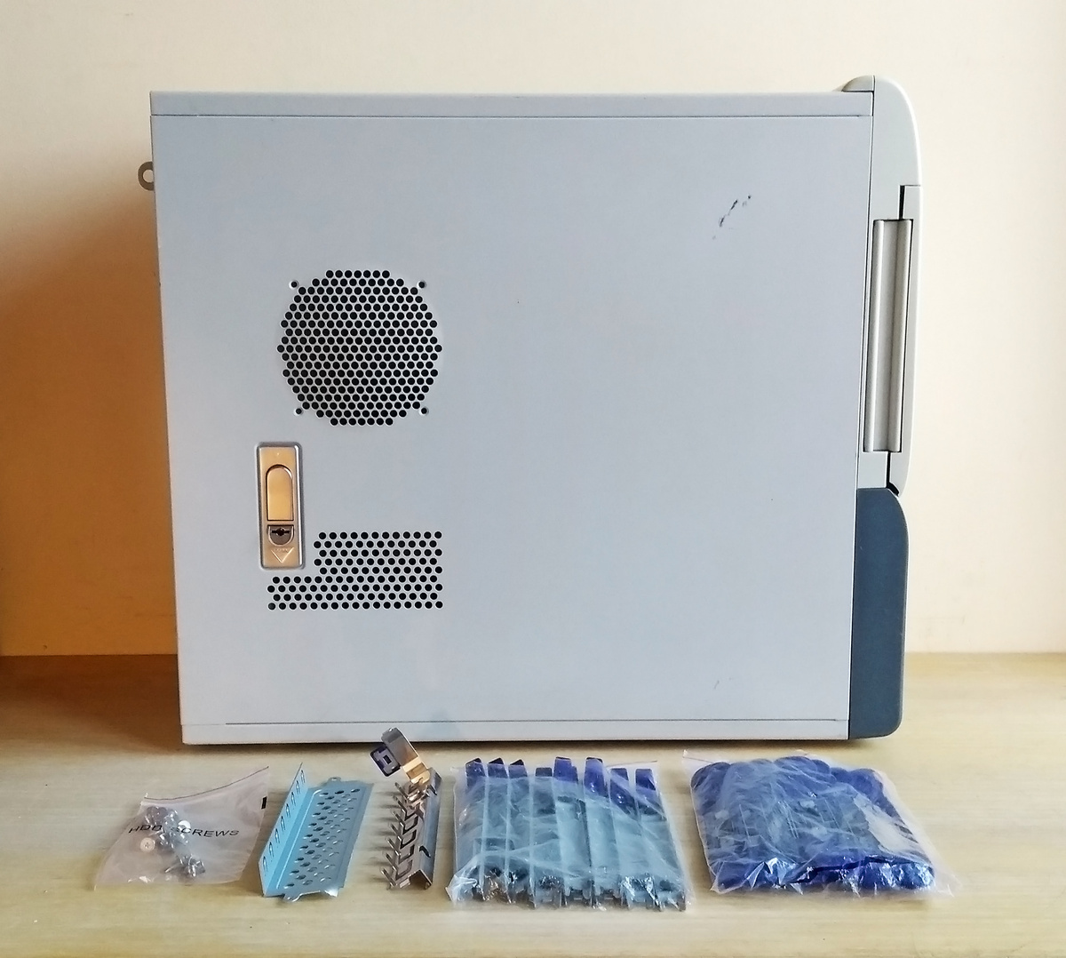 Megvan hozzá az összes gyári 5,25-ös sín (8db), a 3,5-es sín (10db), valamint a HDD rögzítőcsavarok is.