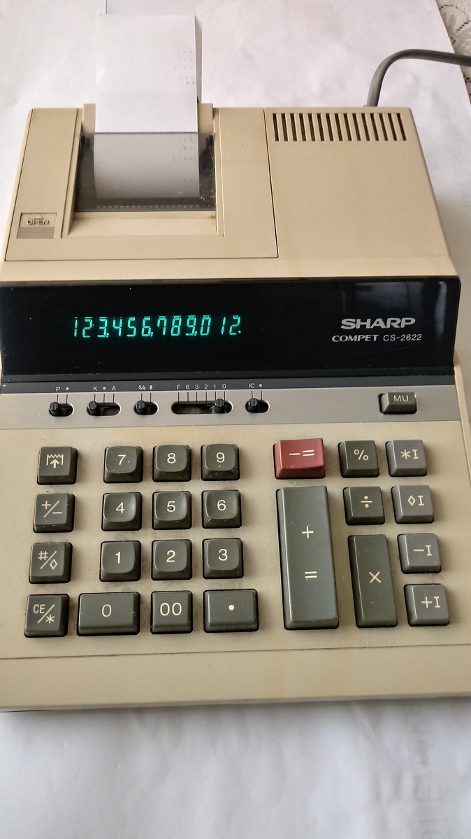 Asztali számológép CS - 2622 tip . minden funkciója működik , halványan nyomtat , papírtartó hiányzik . Potázom .