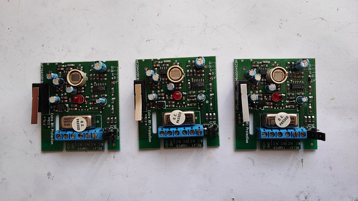 3 db Micron PIR panel, a burkolat sérülése miatt lettek leszerelve, egyébként stabilan működnek.
