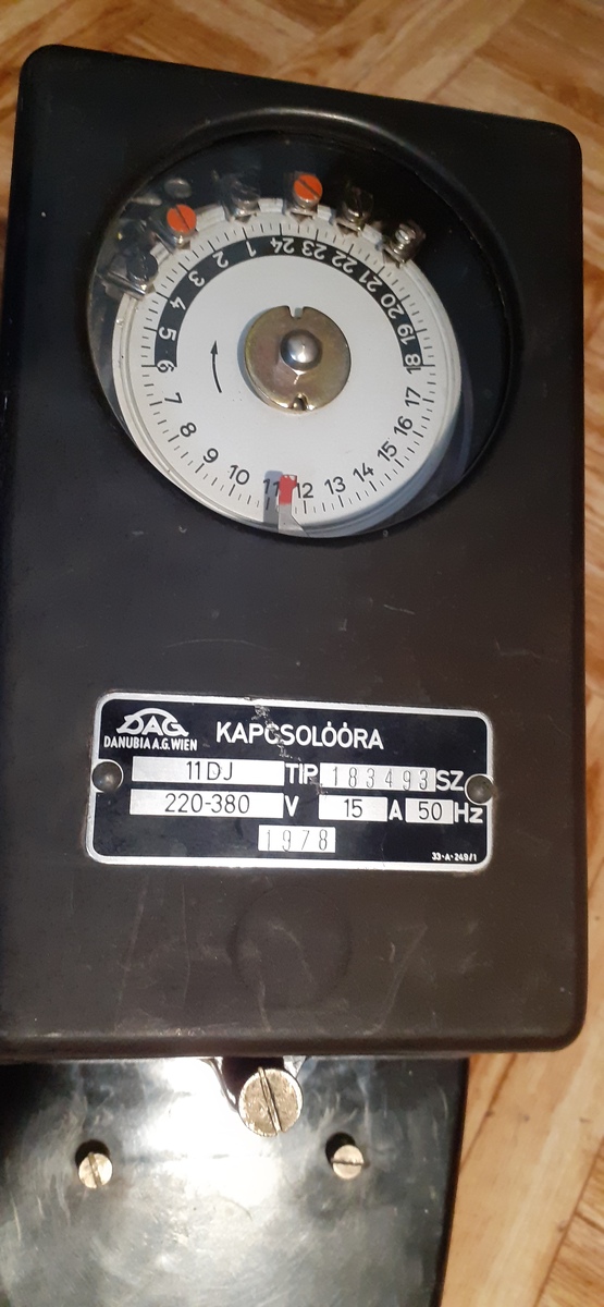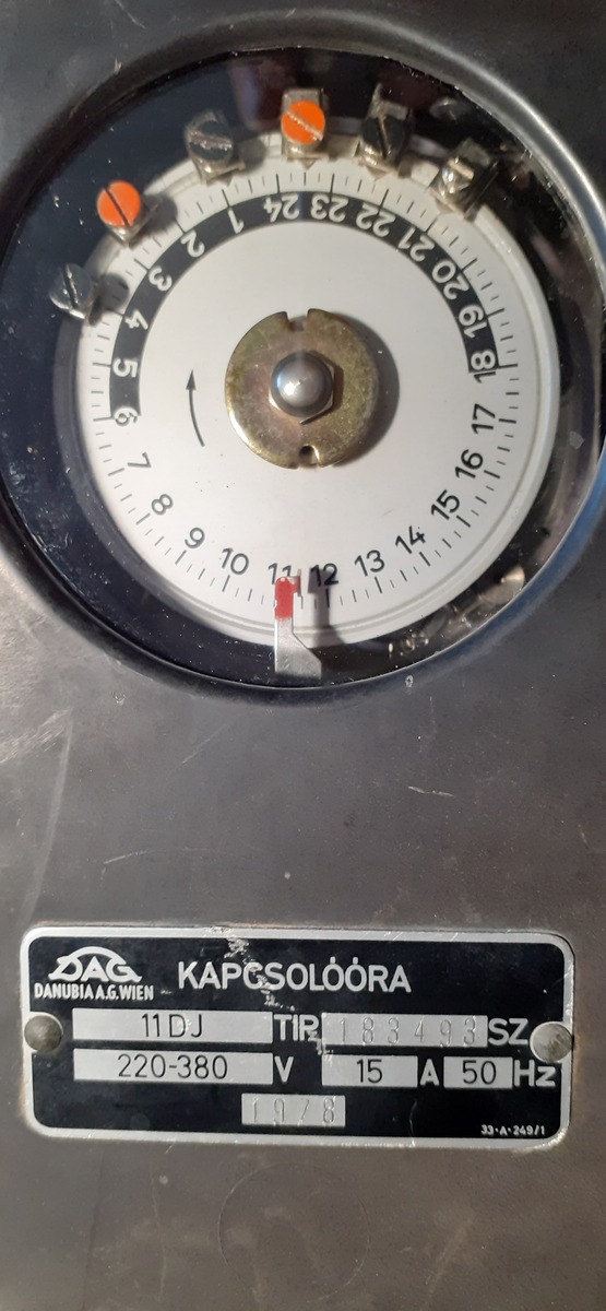 Eladó a képeken látható 11DJ típusú, DAG gyártmányú, Danubia A.G. Wien kapcsolóóra .