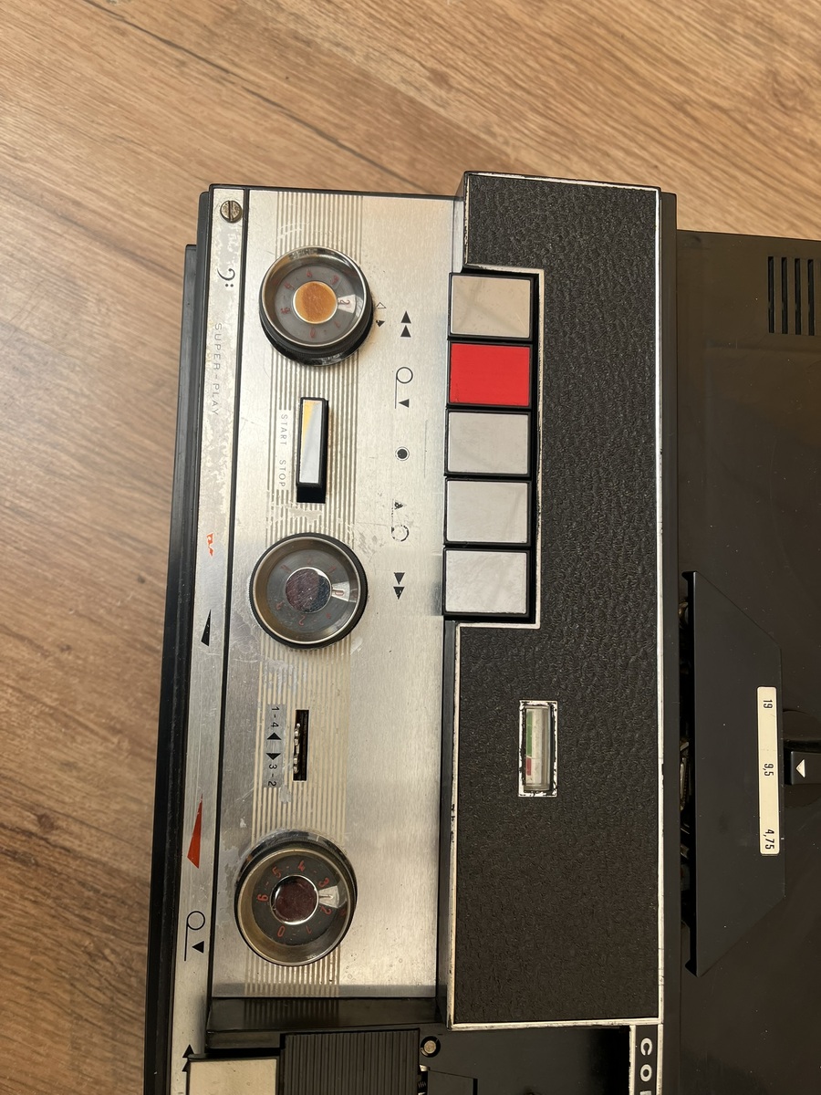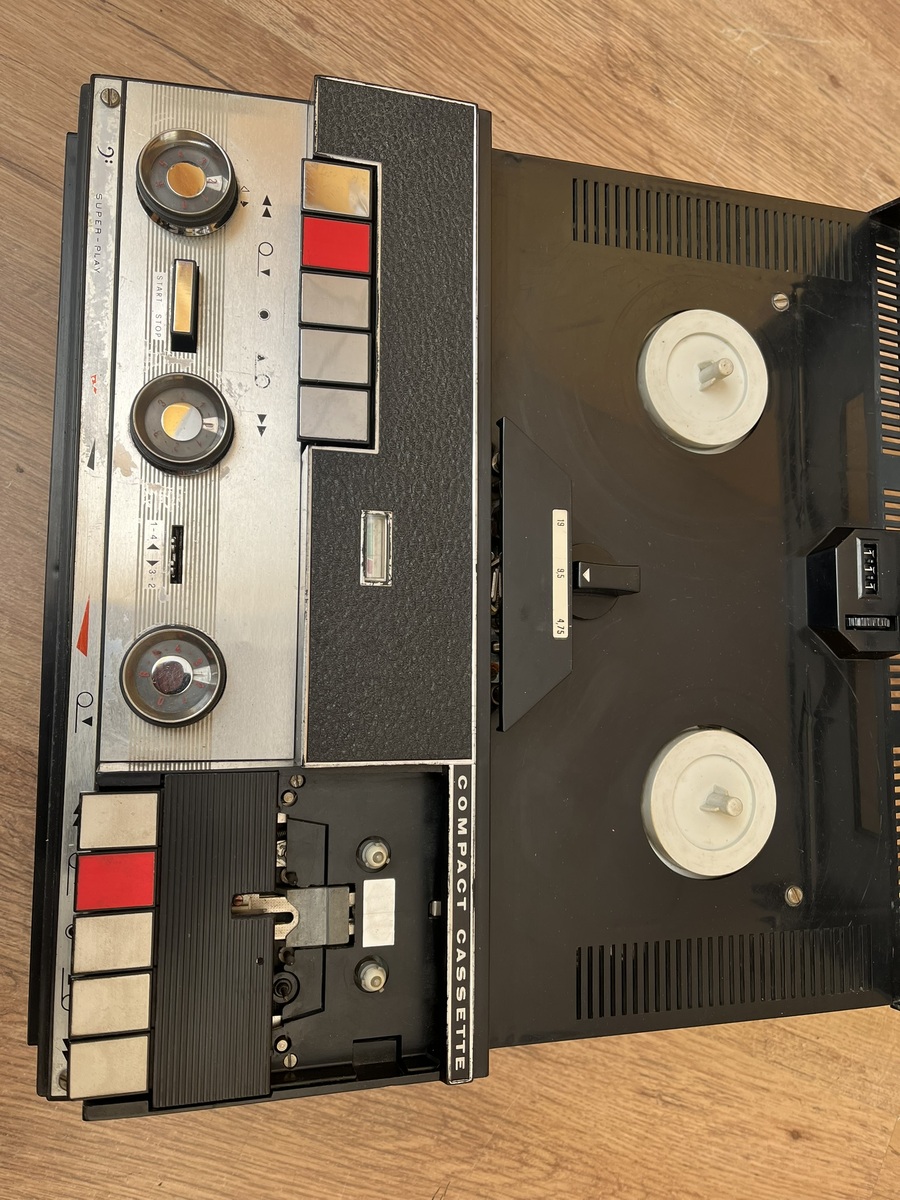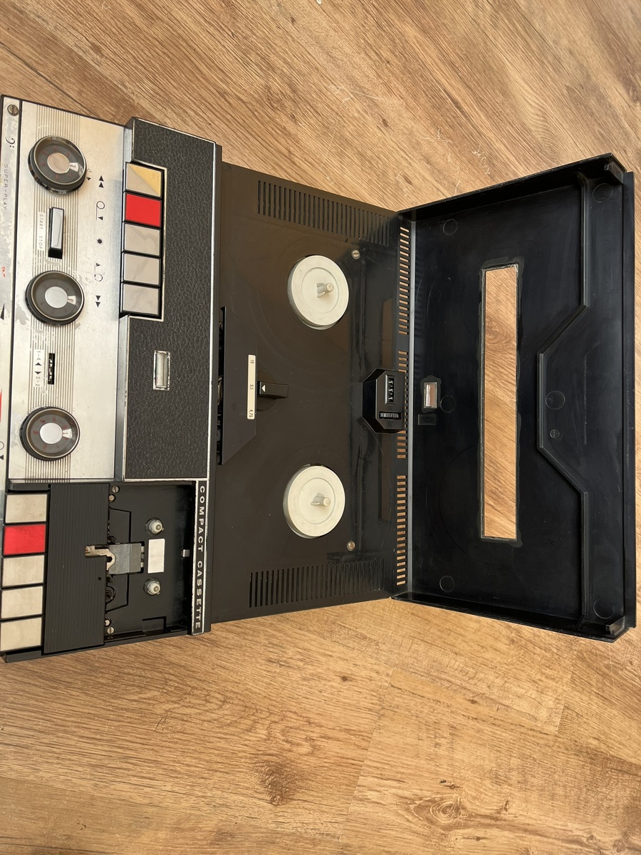 Alapjában üzemképes de az ékszíj csere nagyon aktuális mert már nyögve nyelősen működik. A motor és a kazettás egység között lévő réz közvetítő kerék nincs meg így a kazettás egység nem fog működni de ha valaki tud szerezni akár kölcsönbe egy esztergályos le tudja gyártani semmi kunszt nincs benne. A kazettás egység mechanikája szép. Külleme is még jó állapotban van, a szalagos rész fölötti átlátszó műanyag az nincs meg
