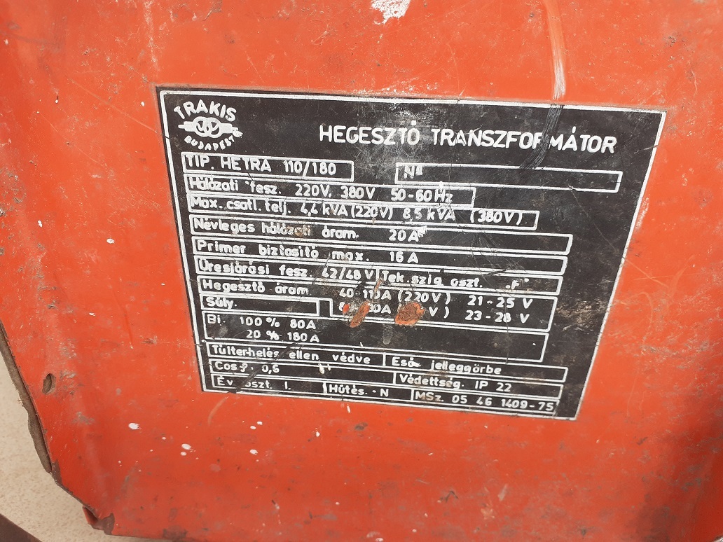 Hegesztő trafó - 1/3 fázisú transzformátor - 4.4/8.5 kVA!