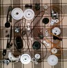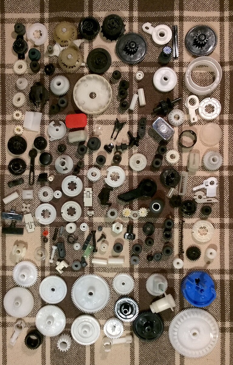 Vannak benne DC motorok (nyomtatóból, floppy meghajtóból bontva), fogaskerekek, bordásszíjak, egyebek.