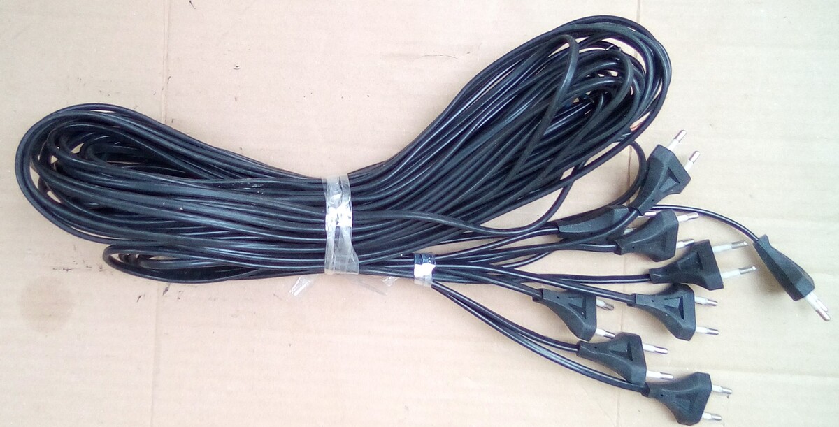 9 db kb 2,5 m hosszú,kettős szigetelésű kábelek egyik végén dugóval.