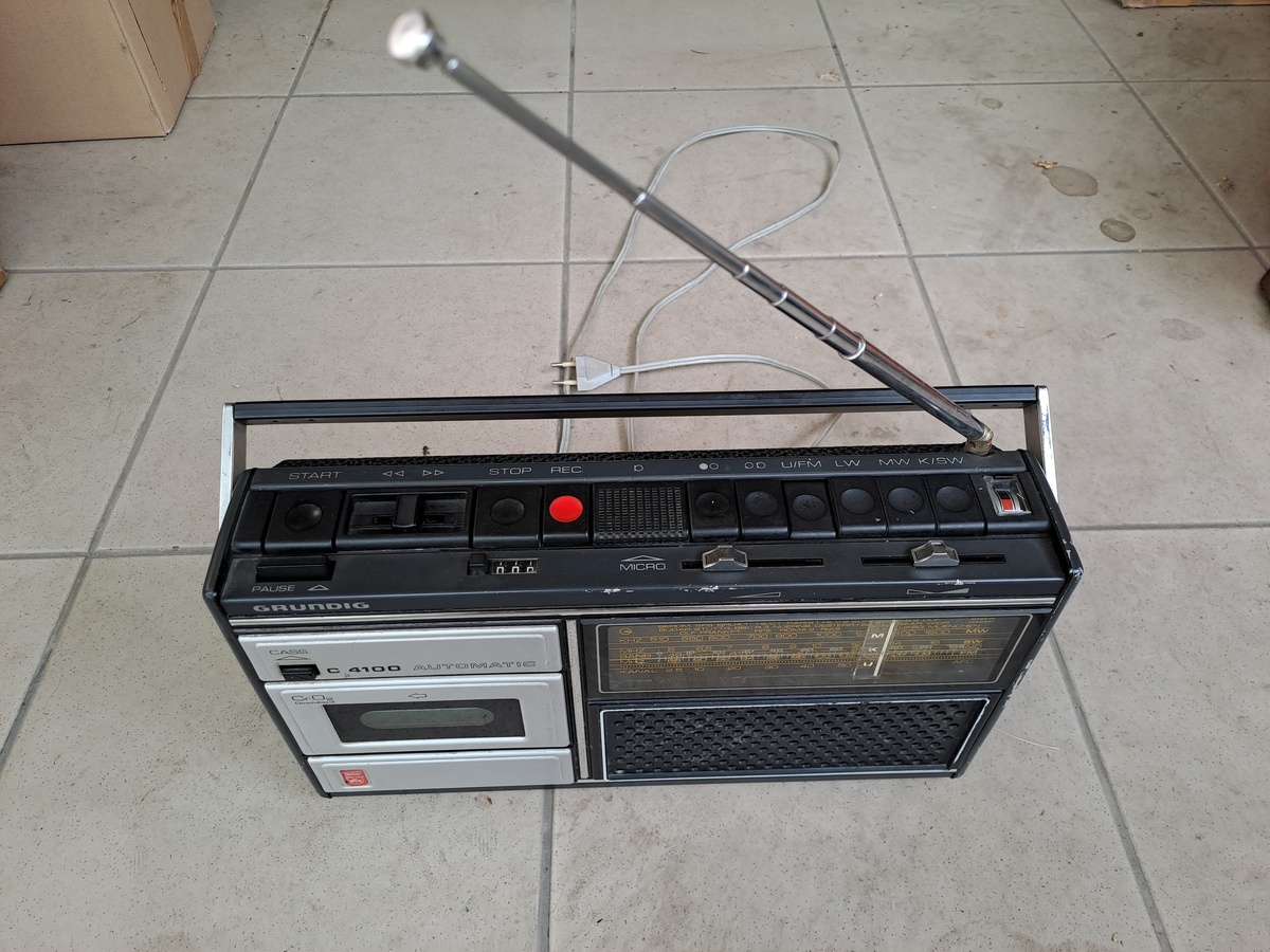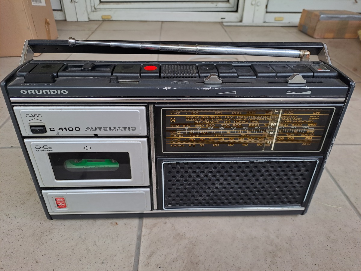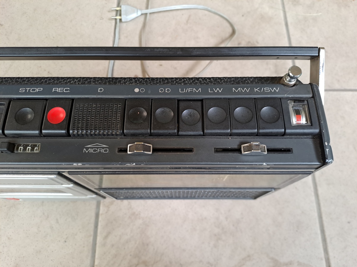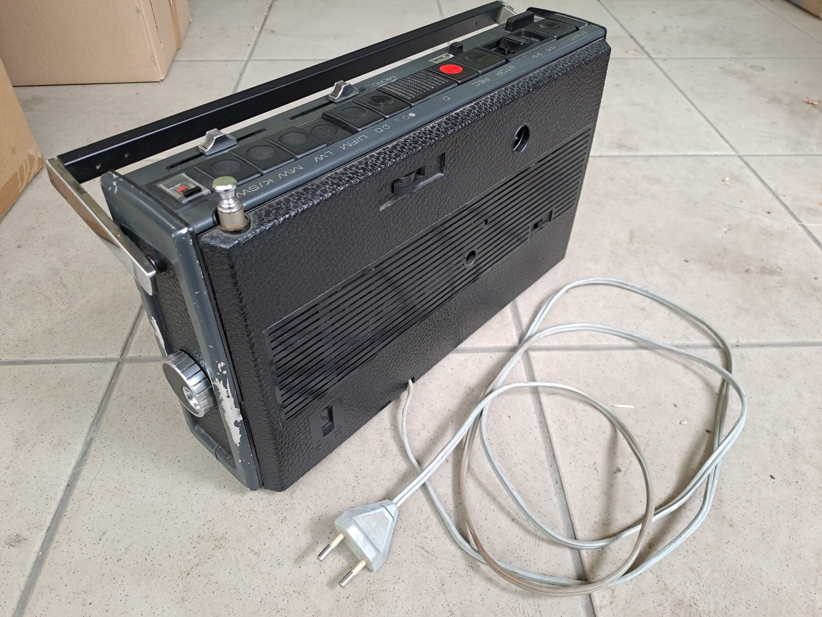 A képek szerinti állapotú, 50 év körüli Grundig rádiós magnó, működőképes, ép állapotban. Képek szerinti apróbb kopásokkal. Hiánytalan, az antenna is sértetlen. Elemtartó egyik-másik érintkezőjén van rozsda, de pont az érintkező felületek valahogy épek.