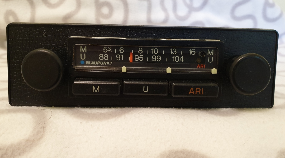 Blaupunkt ARI autórádió kifogástalan külsővel, a képek alapján. Karcmentes előlap, kopásmentes gombok. Kipróbálva. Tökéletes URH (FM) vétel. Szépen szól, nagy hangerőre képes. Középhullám (AM) nem működik. Veterán VW bogárhoz.