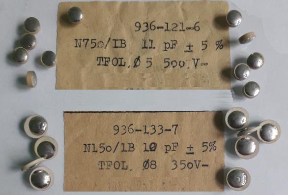 Eladó 2 fajta "lencse forma" kondi: 11 és 10 ( vagy 12 ? ) pF, 500 és 350 voltosak.