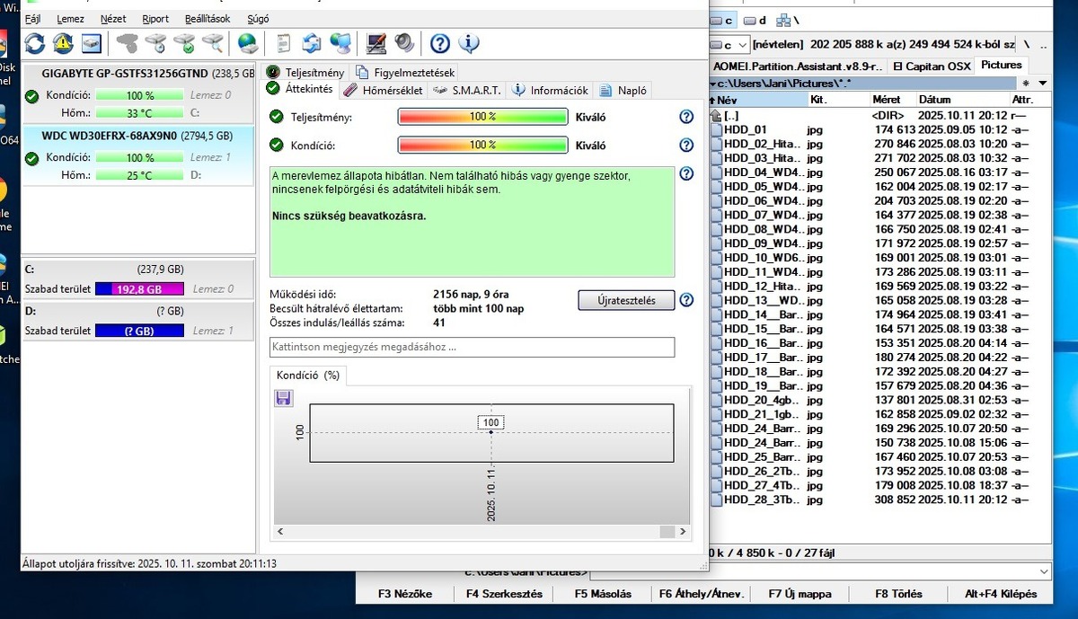 HD Sentinel 100/100, többi adat a képeken, relatíve kevés indítás.