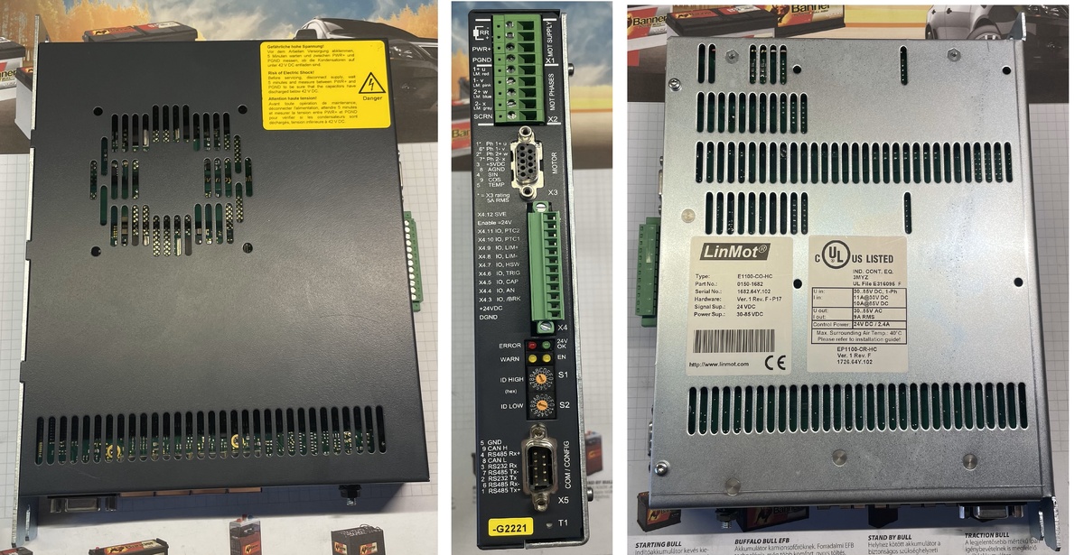 1.kép LinMot E1100-CO-HC elég egyben van, zárlatot nem mutat a DMM a kimenteken, 24V-ra ledek villognak.
