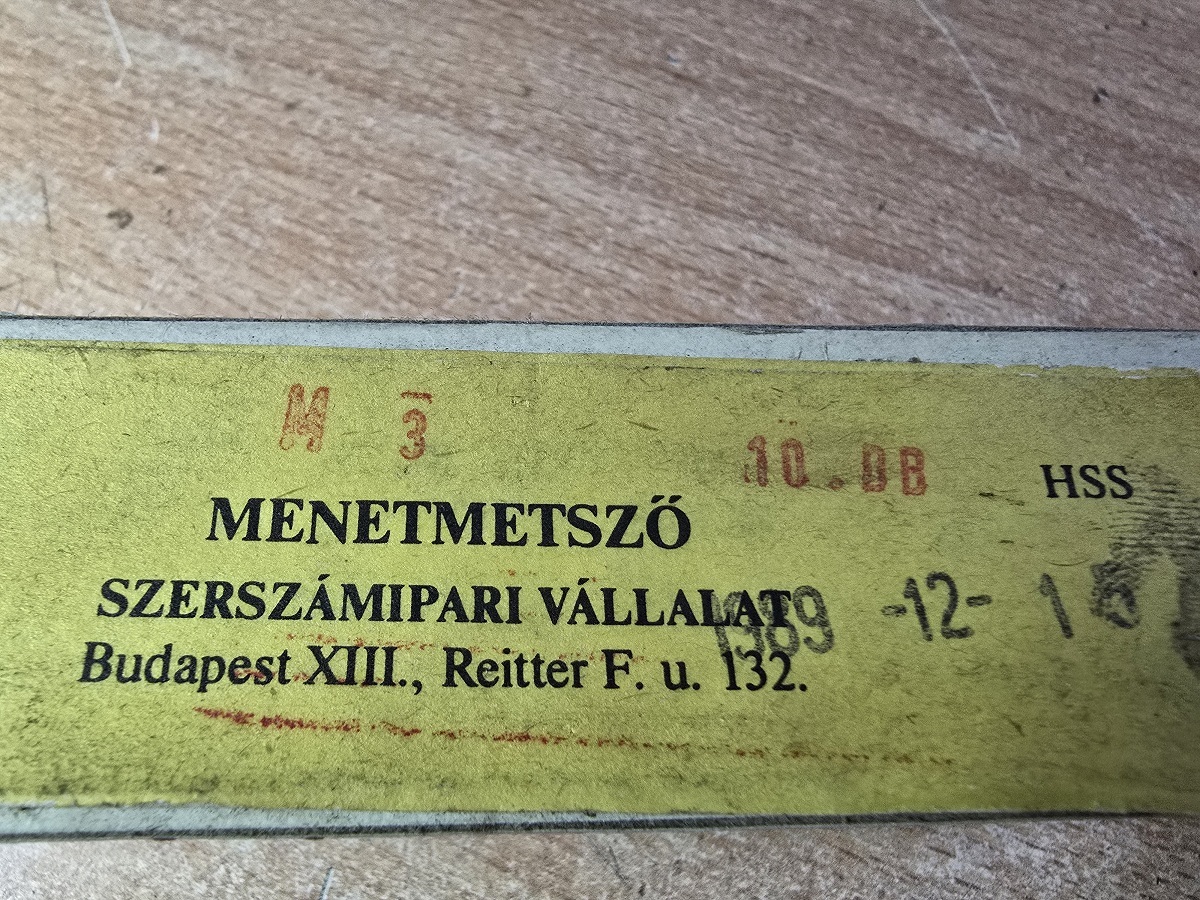 Eladó a képen látható új Menetmetsző HHS M3 6g 10db