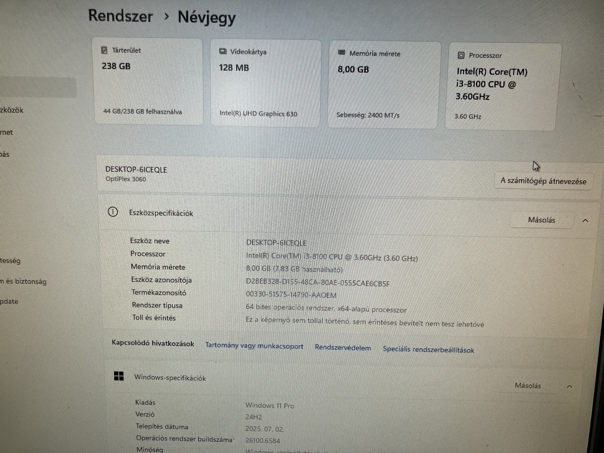 i3-8100 cpu ,8gb ram , 240gb ssd, dvd,usb 3.0, windows 11.