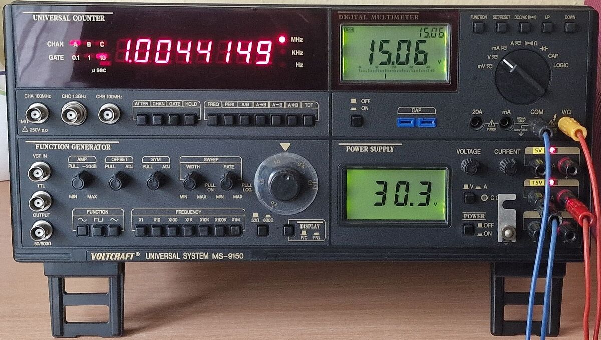Tápegység: 1x 5V 2A fix, 1x 15V 1A fix, 1x 0-30V, 0-2A