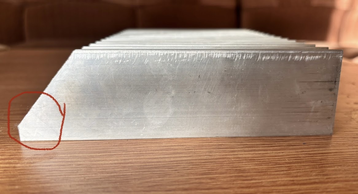 Nem teljesen egyforma a két borda profilja!, képen jelöltem az eltérést (ferde profilnál vágva volt, így nem fut ki teljesen).