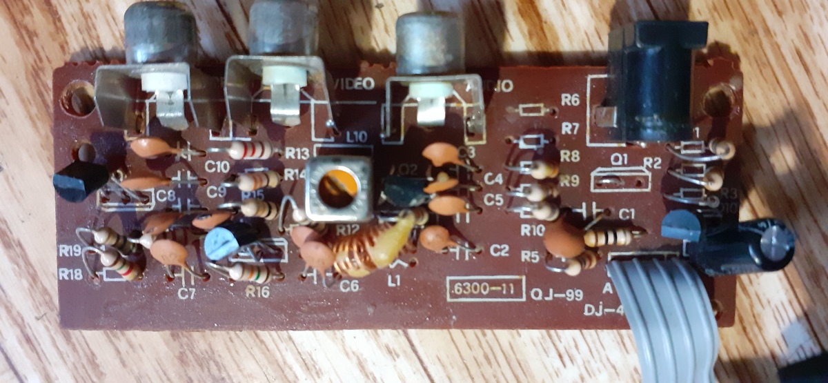 Egy tápegység csatlakozó aljzat és három RCA aljzat található a panelen. RCA a kompozit kimenethez, az audióhoz és az RF kimenethez.