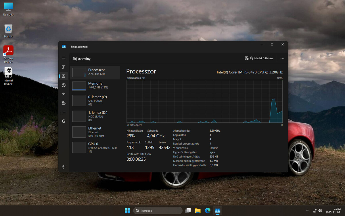 Intel Core i5 3.20 GHz/3.60 GHz Turbo 4 magos CPU, 8GB DDR3 RAM, 120GB SSD, 500GB HDD, CD/DVD olvasó, nVidia GeForce HDMI videokártya, USB 3.0/2.0, a legfrissebb (25H2) Windows 11 Pro-val eladó.