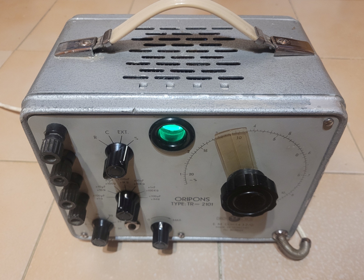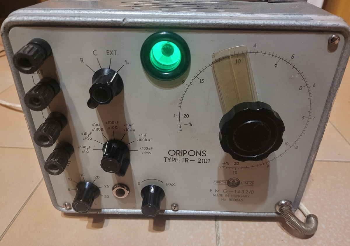 Korának megfelelő állapotú Oripons- szervizműszer, a budapesti Elektronikus Mérőkészülélek Gyára (EMG)-tól (Orion-EMG) 1959-61 körül gyártva. Jobb oldalon a doboz meg van hajolva.