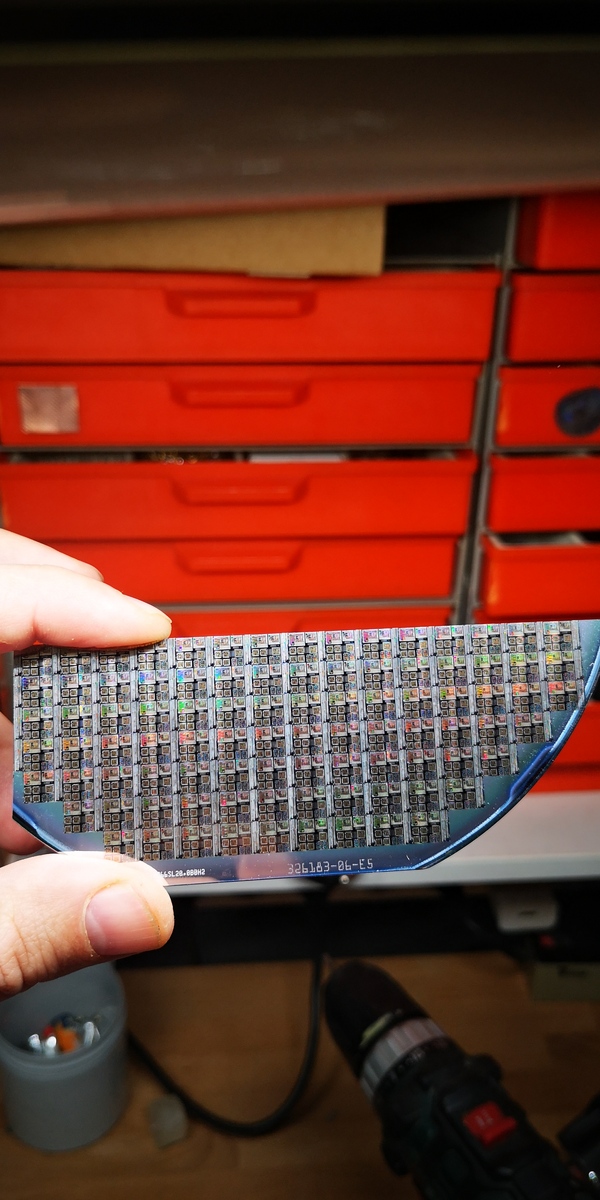 Szilícium wafer darabka. Dísznek, szemléltető eszköznek.