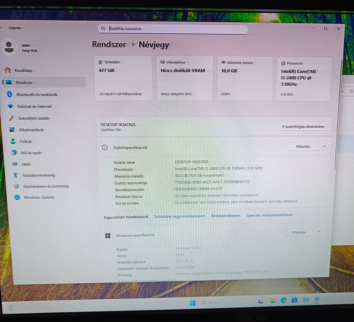 Jelenleg frissen telepített Windows 11 van rajta.