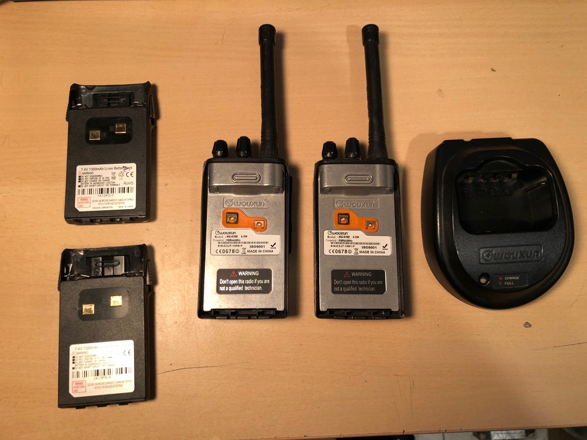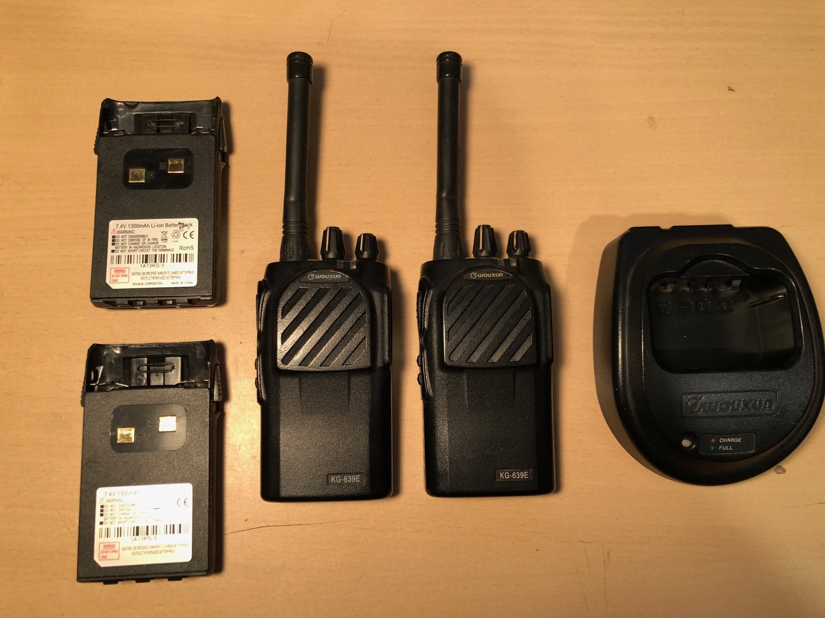 Eladó a képen Wouxun KG-639E UHF kézirádió pár. 400-470 MHz között programozható, jelenleg 16 db PMR csatorna van benne. Nem SDR, valódi kettős keverésű szuperheterodin rádió, klasszikus felépítéssel, jó érzékenységgel és szelektivitással.