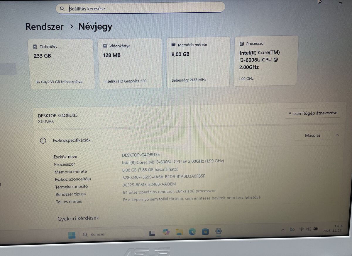 6 Gen. i3,ddr4,ssd,aktív win11 laptop