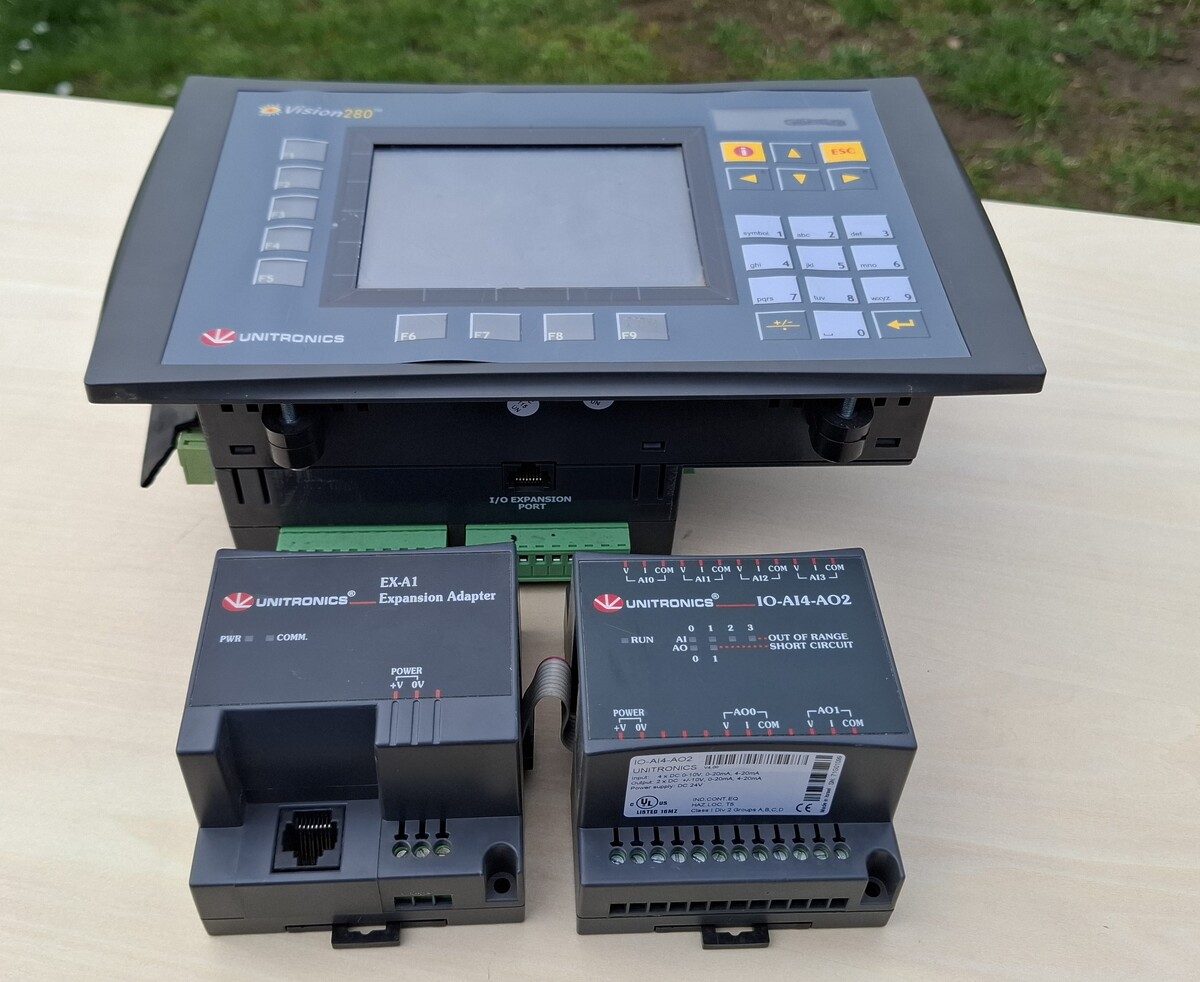 Képeken látható PLC kijelző, adapterekkel együtt.