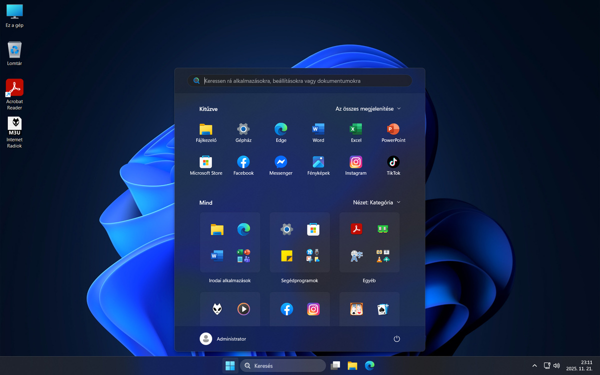 - Programok: Teams, Facebook, Spotify, Instagram stb.