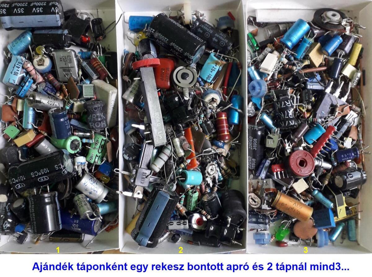 Van rajtuk 2 db FQA24N50, 1 db FQA7N80 fet, több nagyáramú dióda, 5 voltos tápok, 3 db klf. flyback trafó, stb.