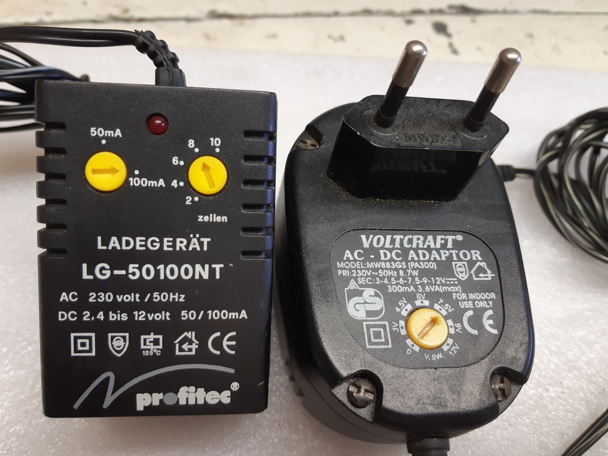 2 db. változtatható kimeneti feszültségű dugasztáp, sok különféle csatlakozóval eladó.