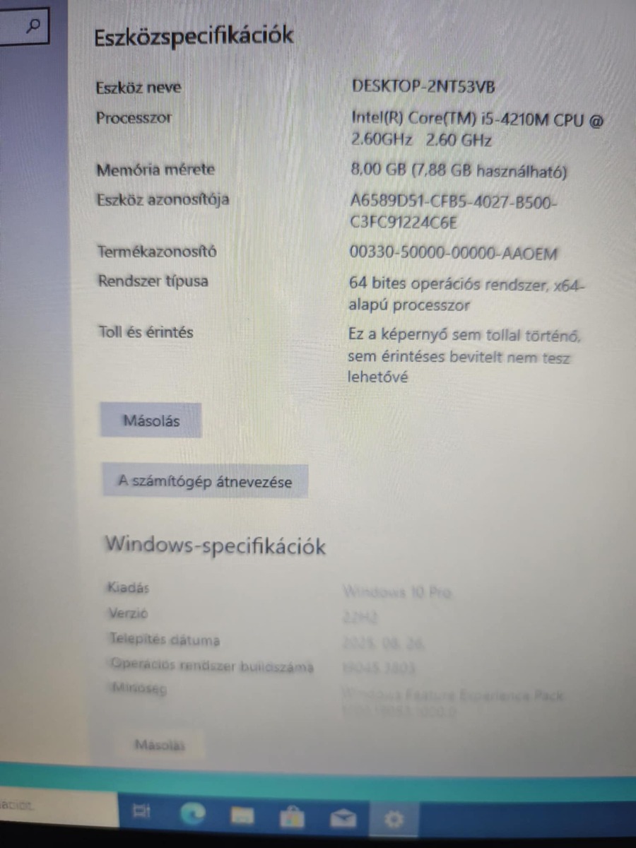I5 proci 8gb ram 120gb ssd, újratelepitett nem regisztrált win10,adapterével.