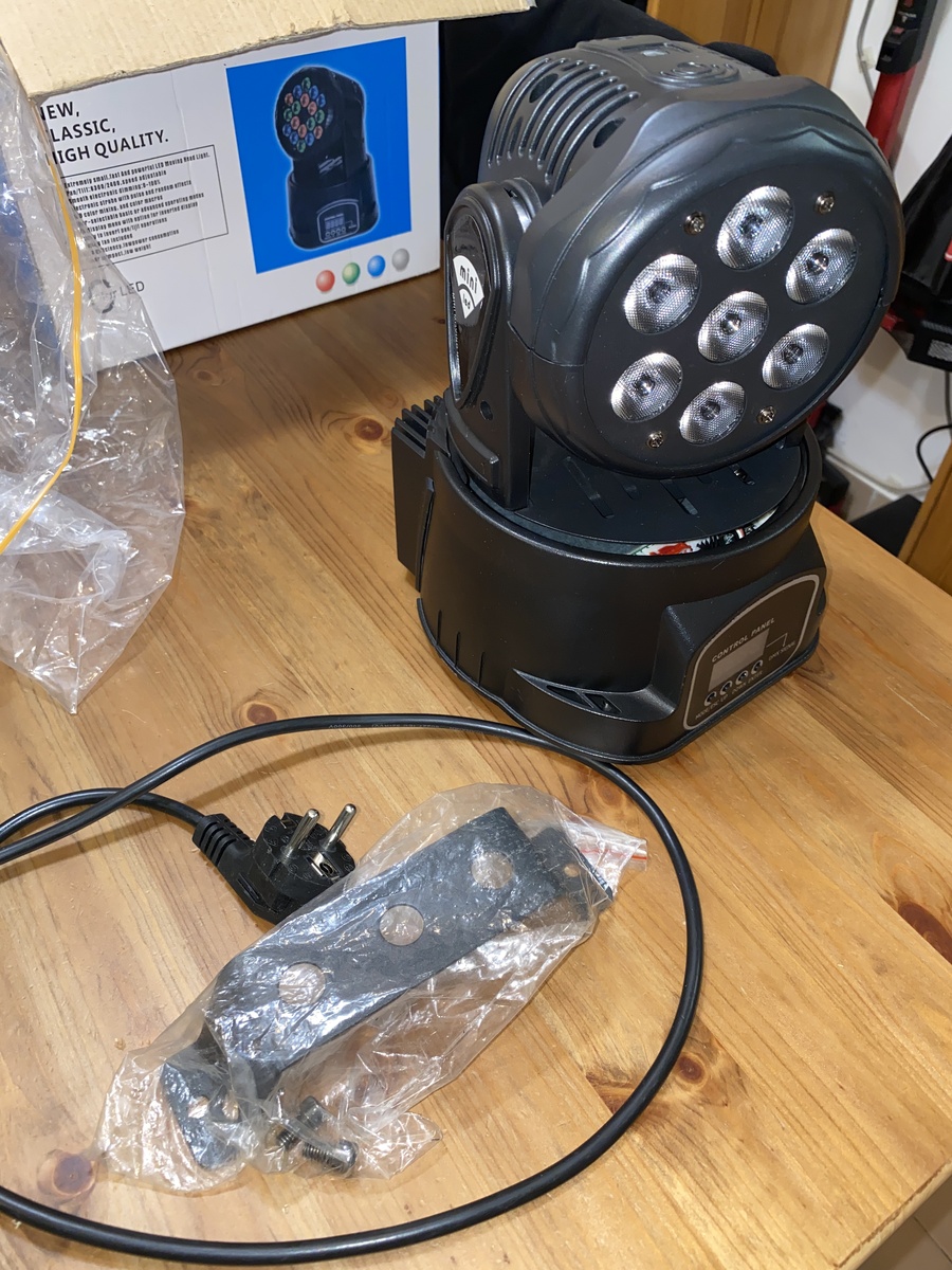 Eladó a képeken látható kb. 2-3 alkalommal hangulatfénynek használt, mini LED moving head, mozgó fejes 7x10w Rgbw wash diszkó lámpa, robotlámpa, fénytechnika.
