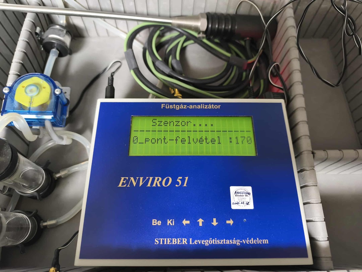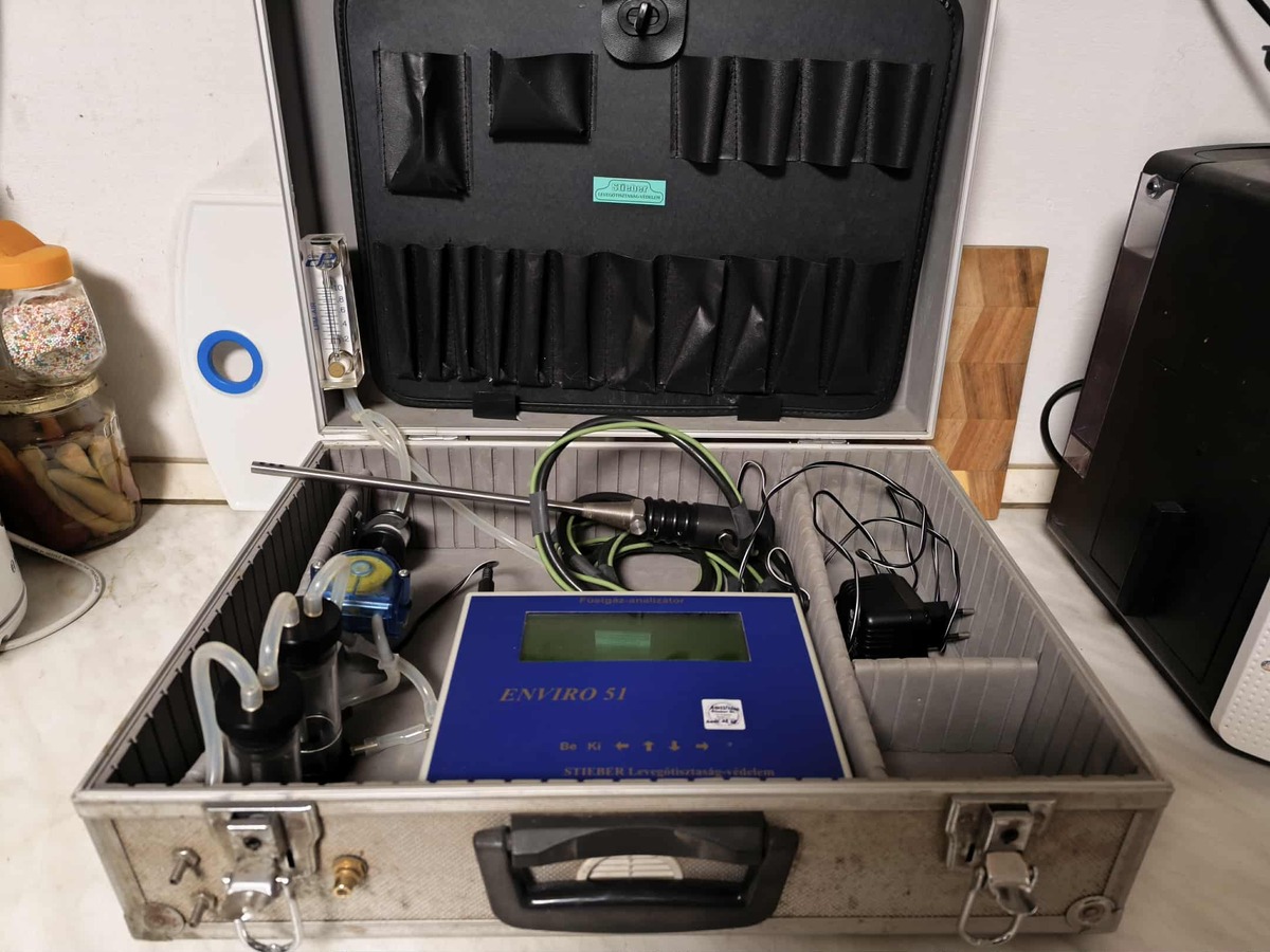 Enviro-51 füstgázelemző készülék alukofferben adapterrel.