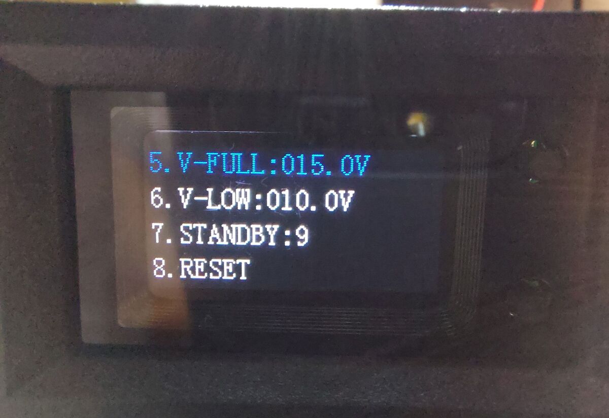 Százalékos teljesítménykijelzés: Feszültségreferencia százalékos teljesítmény (a teljes töltöttség/alacsony feszültség küszöbértékek manuális beállítását igényli)