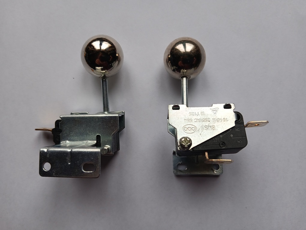 Golyóval lefelé lógatva szerelendő, ha borul az elektromos eszköz, a mikrokapcsoló vált.