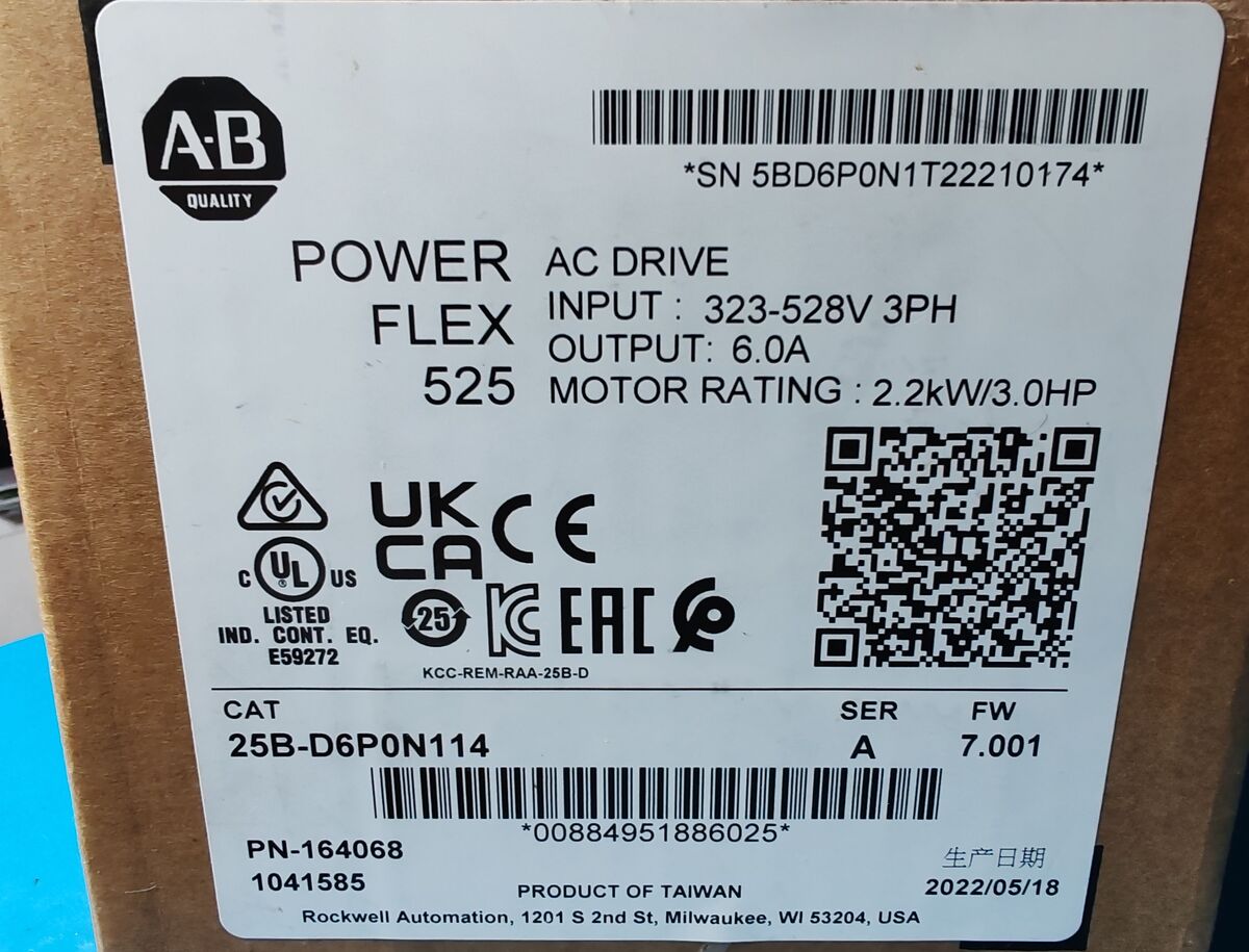 Allen Bradley Inverteres meghajtó, PowerFlex 525, 2,2 kW, 3 fázis, 500Hz, 25B-D6P0N114
