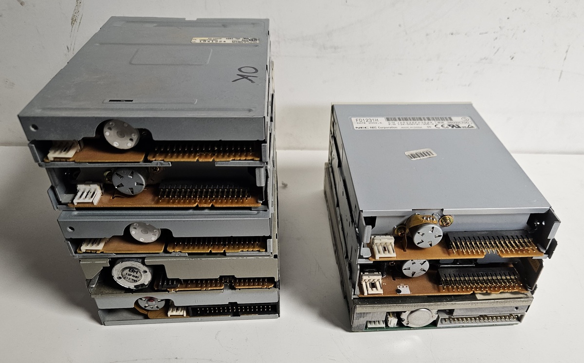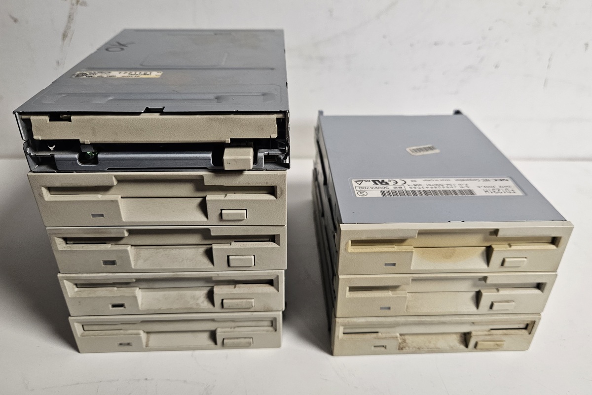 Eladók a képeken látható 1.44 FDD meghajtók egyben. Mind tesztelt, a bal oldali 5db működik a 3db jobb oldali hibás.