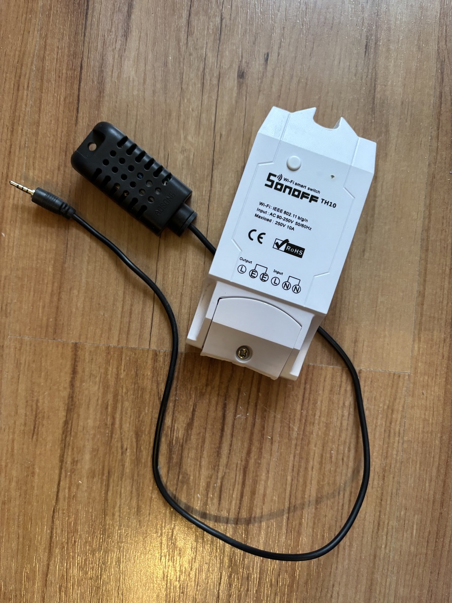 Eladó SONOFF TH10 Smart relé. Tartozik hozzá egy hőmérséklet, páratartalom szenzor is.