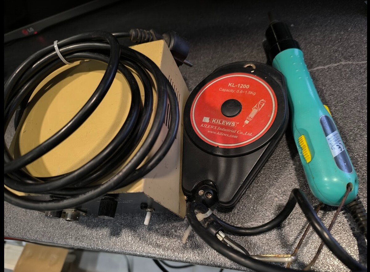 Eladó egy ipari Japán gyártmányú csarozó állomás kompletten +Kilews KL-1200 balanszer, 0,6-1,5 kg, 1,6 méter kötélhossz. Teljesen jól müködik minden része.Az állomás tartalma: