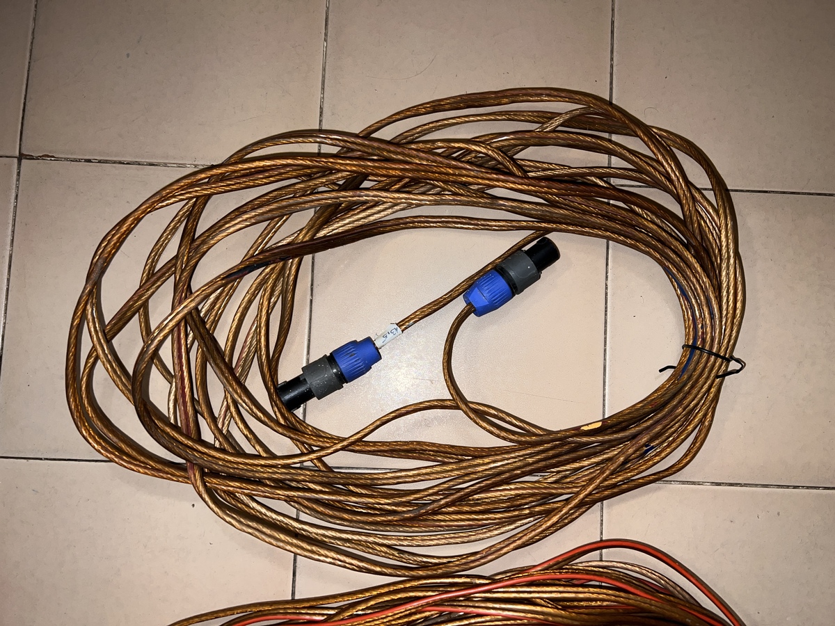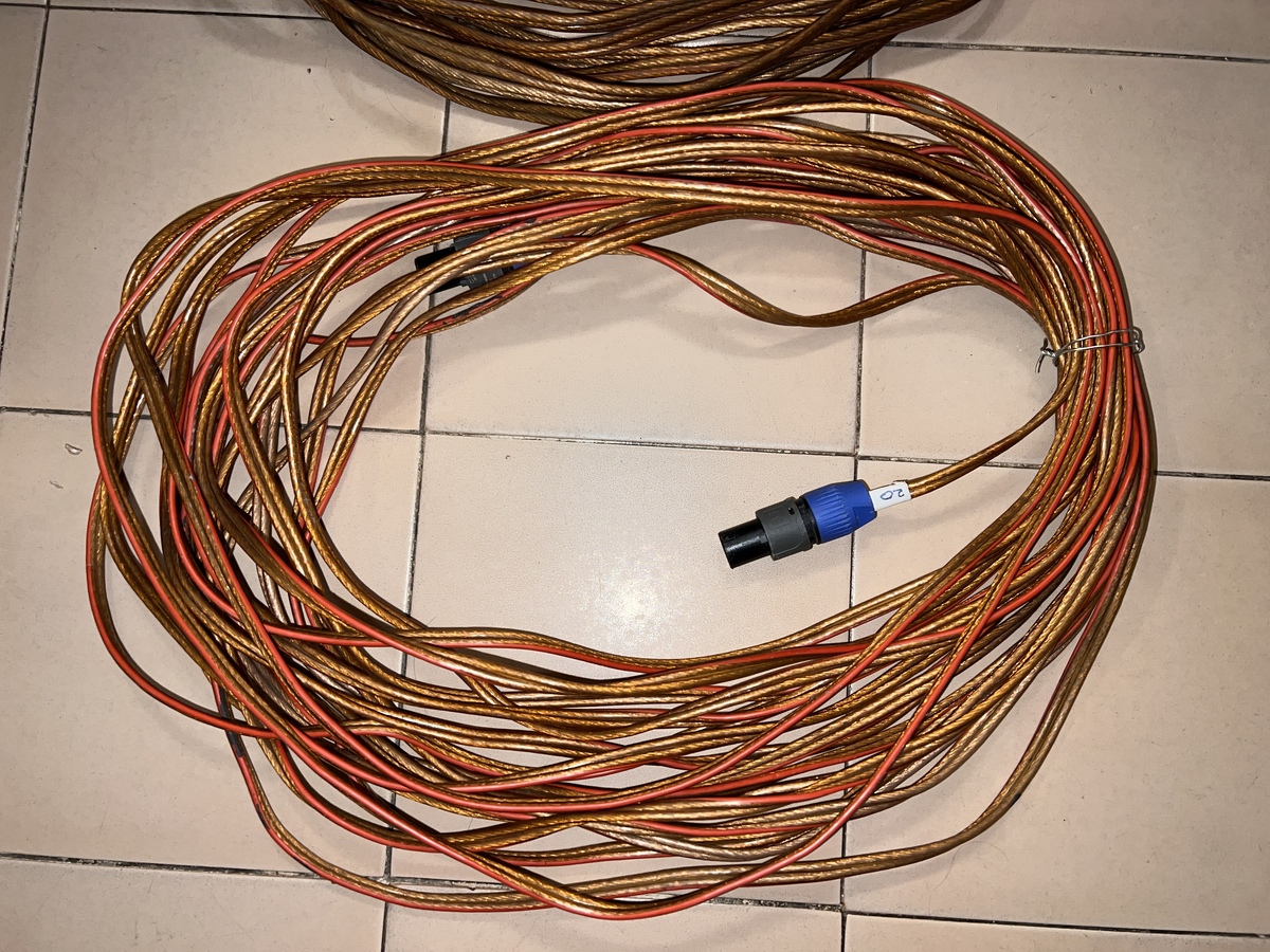 Eladó a képeken látható kettő minőségi hangfalkábel kimondottan PA, azaz színpadtechnika, diszkó, hangosítási dolgokhoz. OFC sodrott réz.