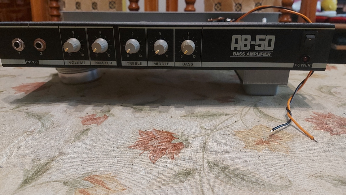 Az Aria AB-50 50 W-os kombó erősítője doboza nélkül. Az erősítő hibátlanul működik csa egy doboz kell hozzá.