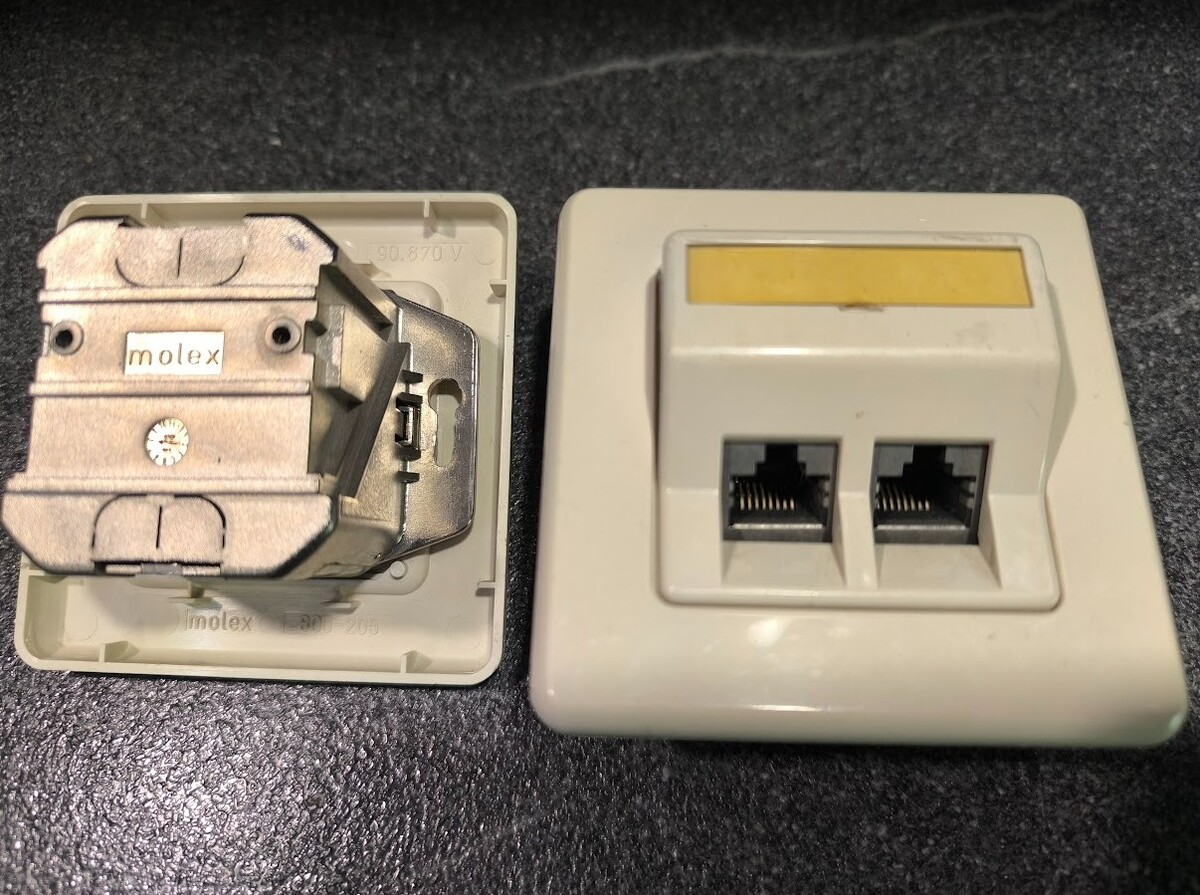 Eladó Eképeken látható Molex márkájú, falba süllyeszthető, dupla RJ45 hálózati aljzat. Az ár a 2 dbra értendő.