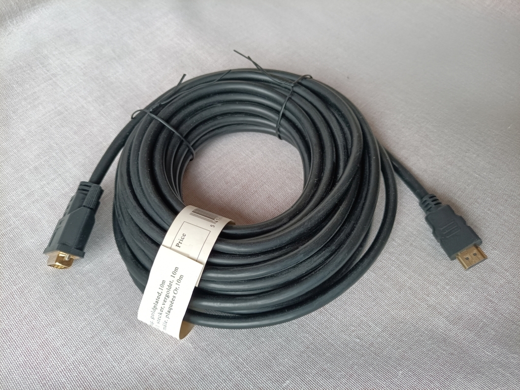 10 m hosszú, aranyozott csatlakozókkal.