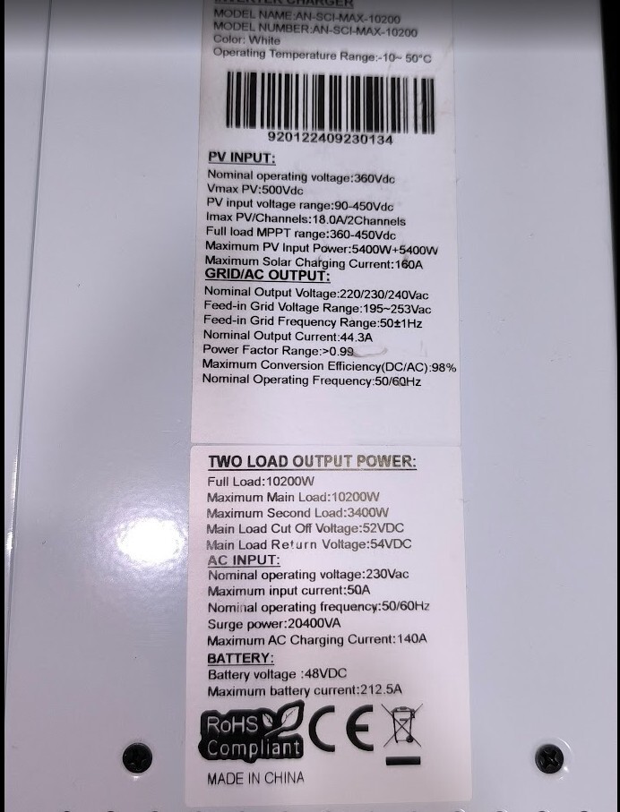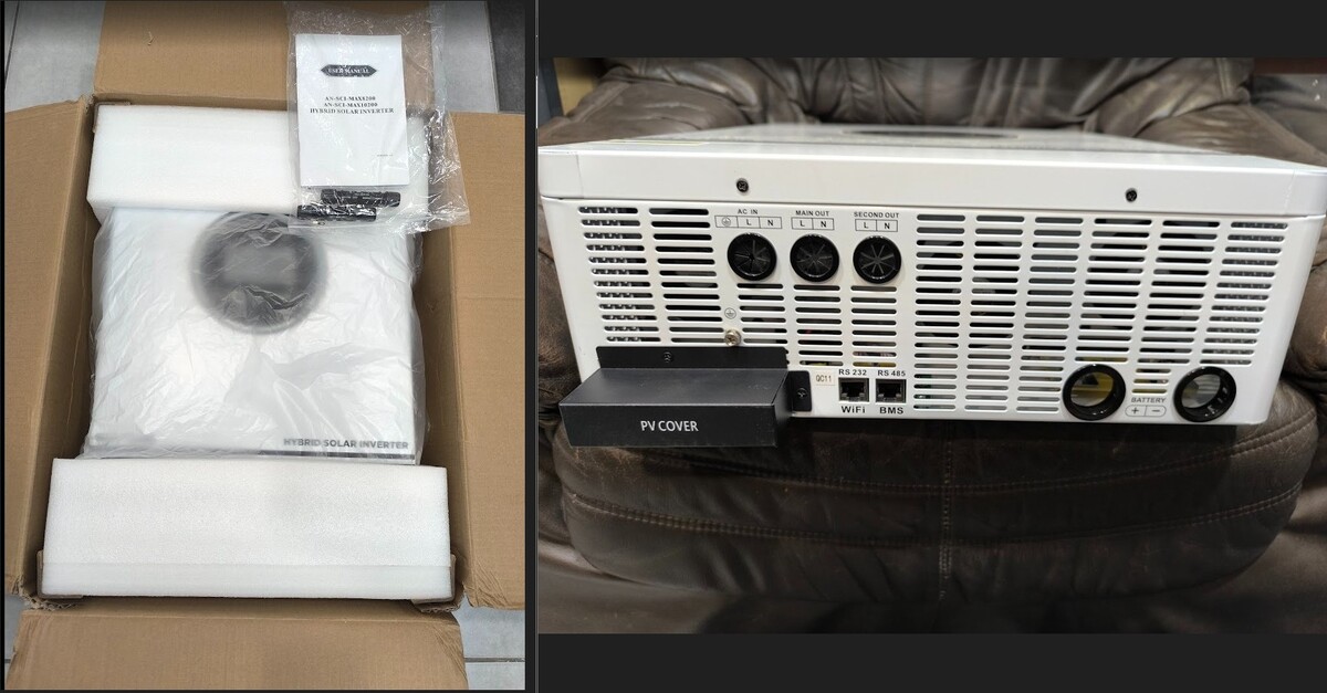 Eladó új 10.2kW os szigetüzemü hibrid inverter. Teljesen új csak kipróbáltam, tökéletesen müködik.Az inverter képes az egész háztartás energia ellátását biztosítani ! 2x500V-os PV bemenet-10800W., 2MPPT -2x18A,, Kettős AC kimenet, 160A akkutöltés 48V-on. RS485 port a BMS komunikációhoz lifepo4 BMS kommunikációs akksikhoz. RS232-es port Wifi-hez.