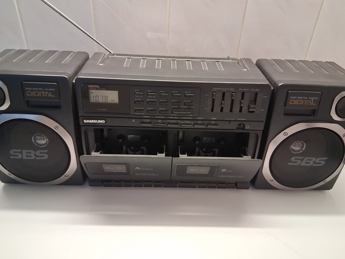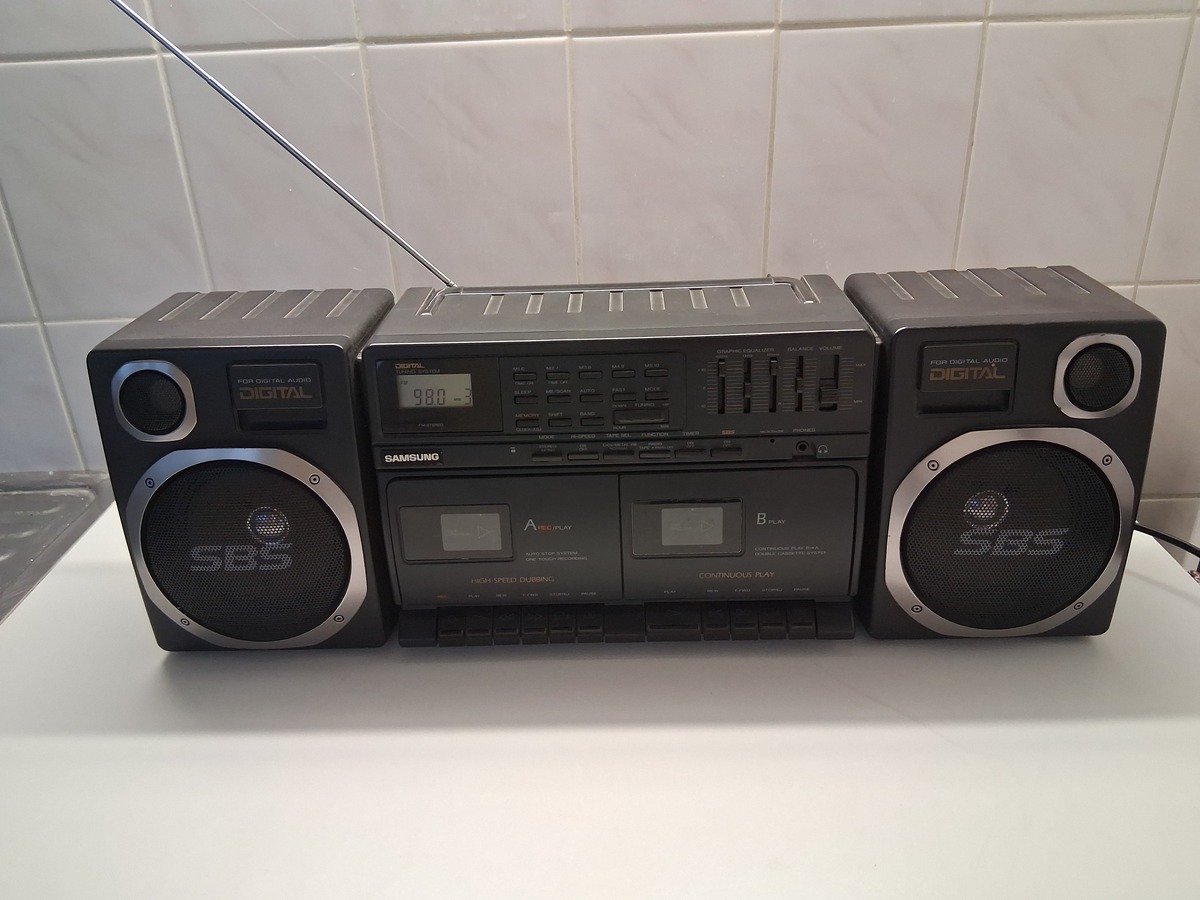 Eladó a fotón látható Rádiós 2 kazettás magnó, programozható csatornákkal, leemelhető hangfalak 60x20 cm méret.