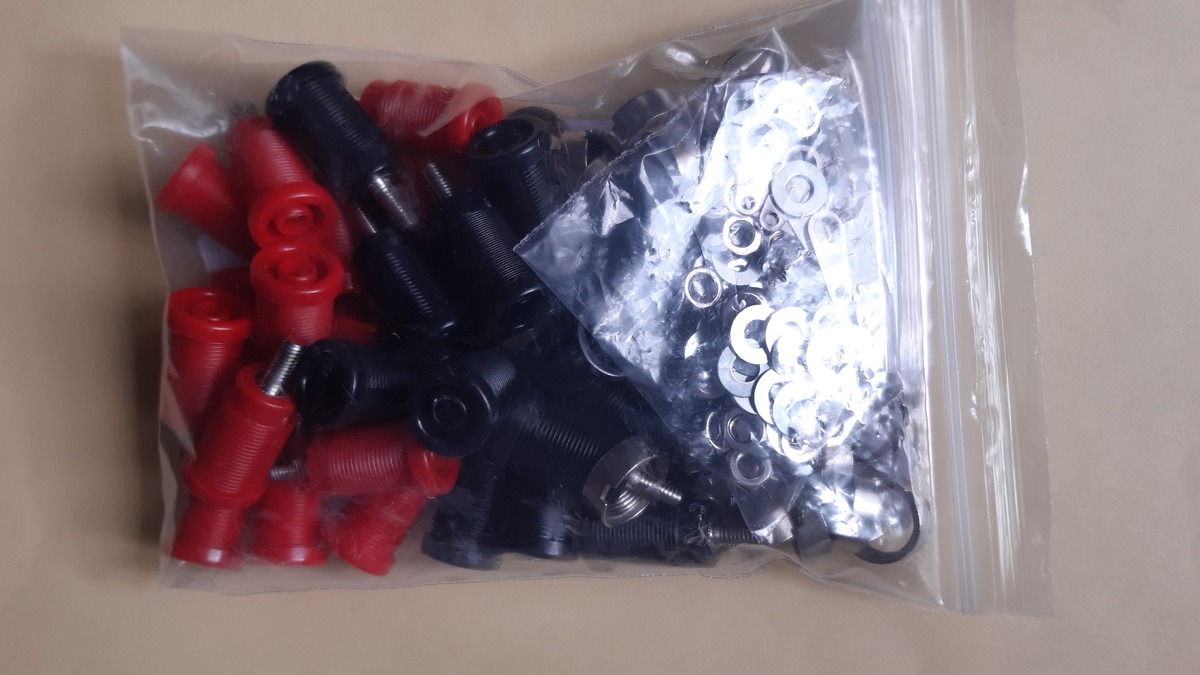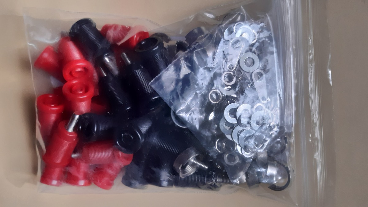 Eladó 15db piros és 15db fekete 32A-es 4mm-es (hagyományos méret) banán aljzat menetes végű.