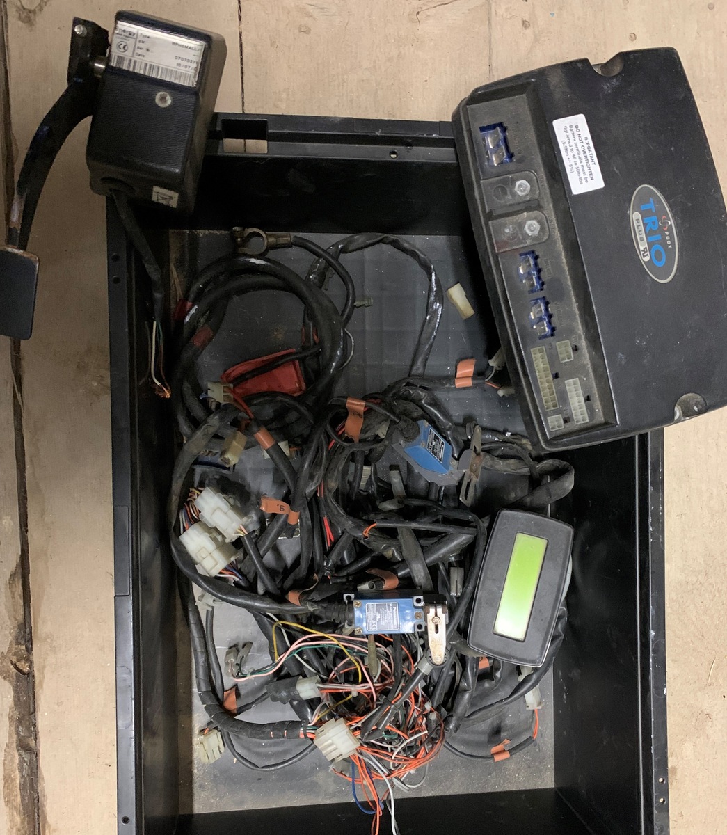A motorhajtás, kábelkorbács, gázpedál, kijelző...sallangok egy szettet képez.