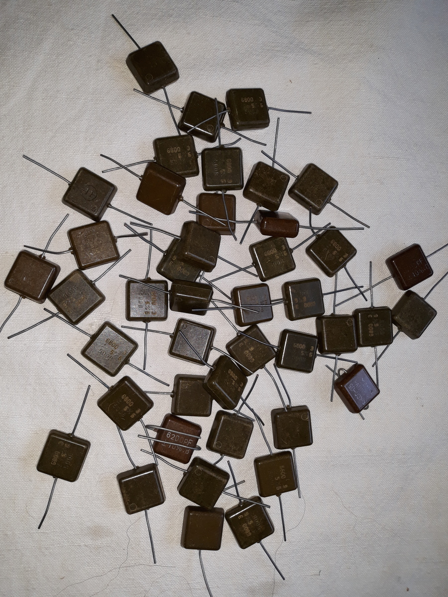44 db orosz csillám kondenzátor eladó.5,6 és 6,8 nF 500V vegyesen.