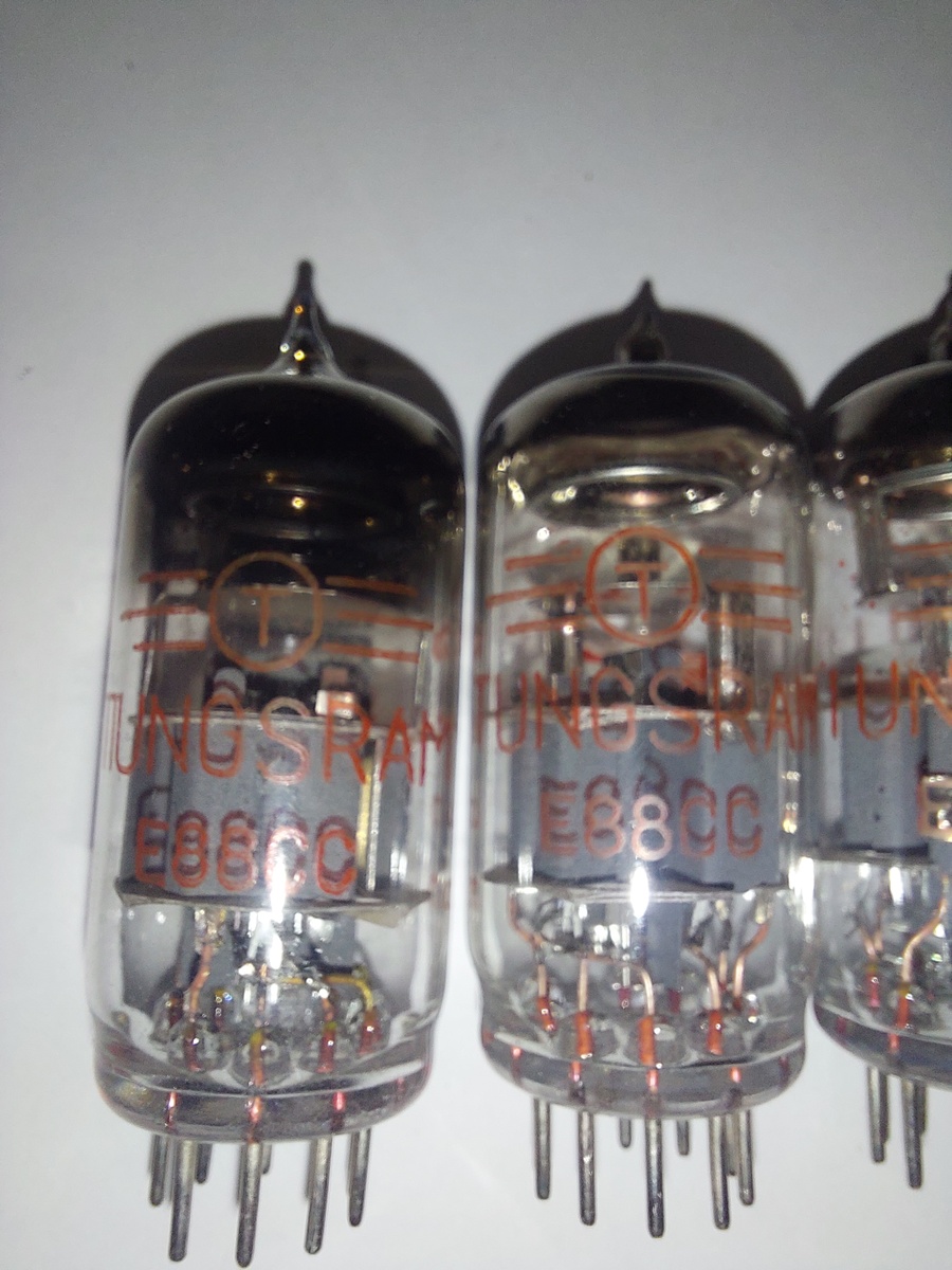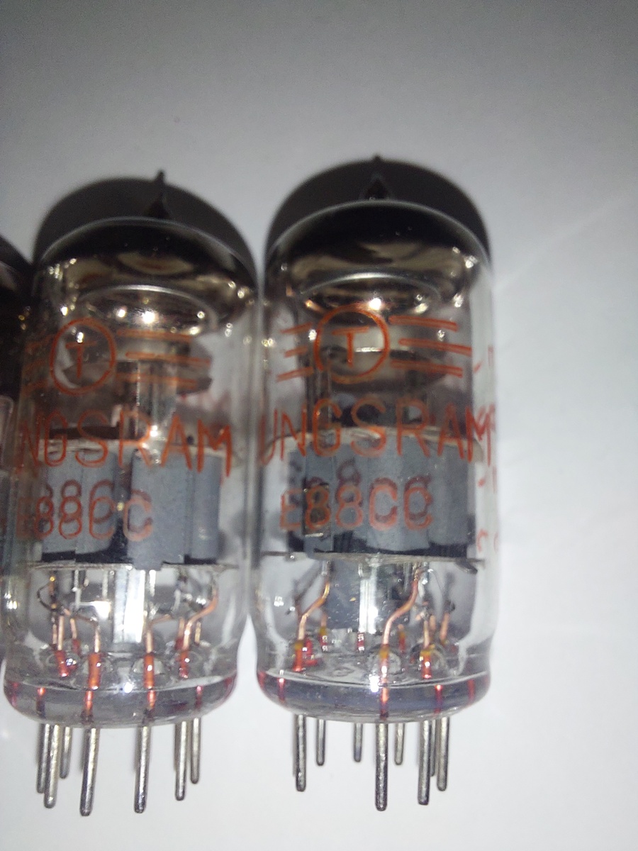 Tungsram E88CC piros felirattal. A csőfelek,de a csövek is szépen illeszkednek egymáshoz.Az ár darabár