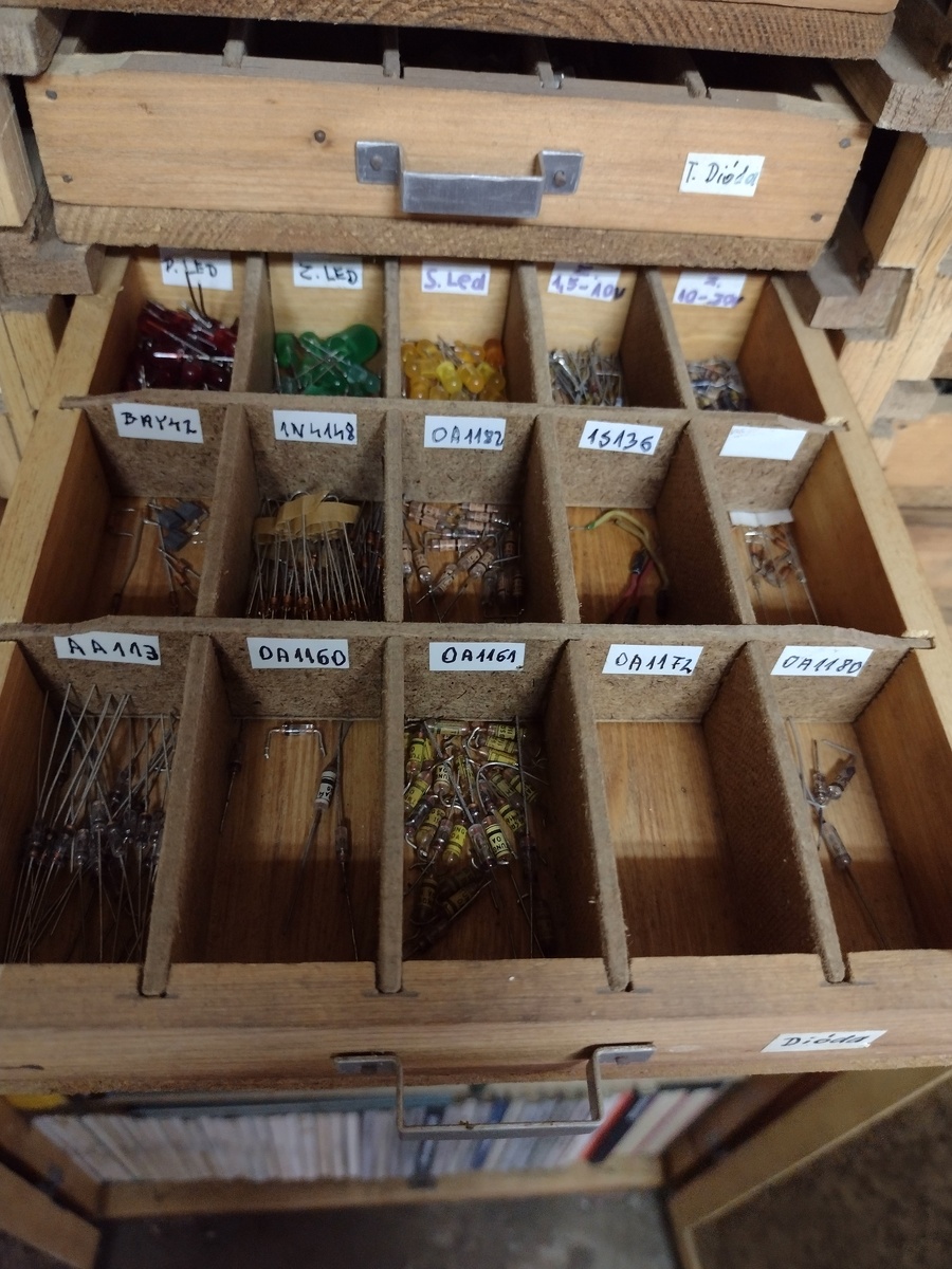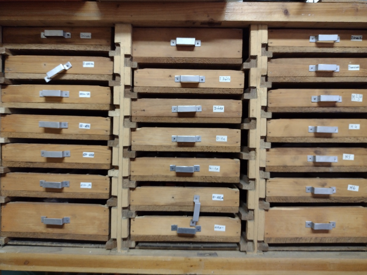 Alkatrésztároló szekrény eladó a benne lévő alkatrészekkel.